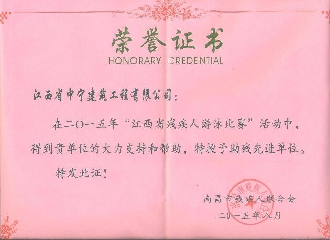 為響應江西省體育局號召,進一步做好殘疾人體育工作,推進我市殘疾人體育事業在新的起點上實現又好又快地發展,我司贊助2萬元人民幣作為支持《殘疾人游泳、田徑、羽毛球、兵乓球比賽》活動基金。